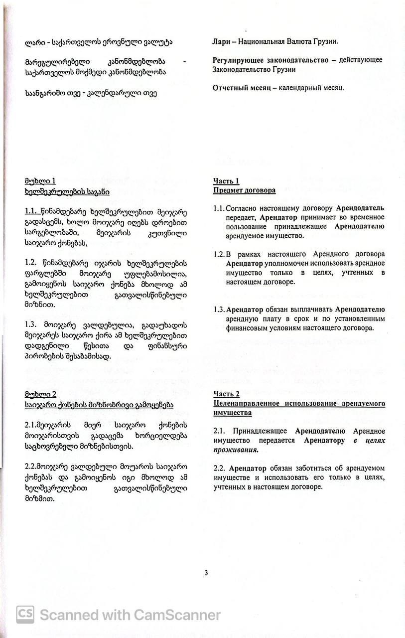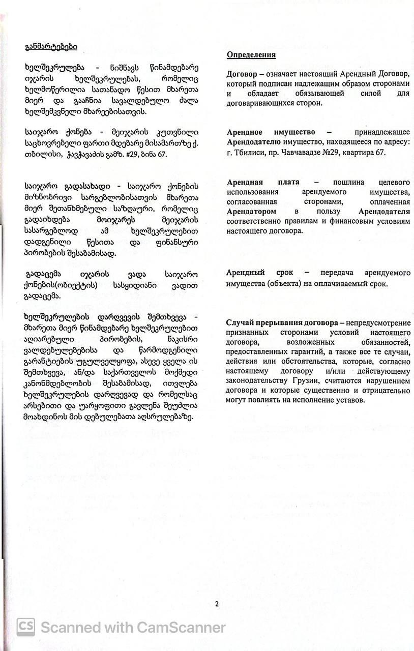 Арендное имущество – принадлежащее Арендодателю имущество, находящееся по адресу: г. Тбилиси, пр. Чавчавадзе №29, квартира 67.